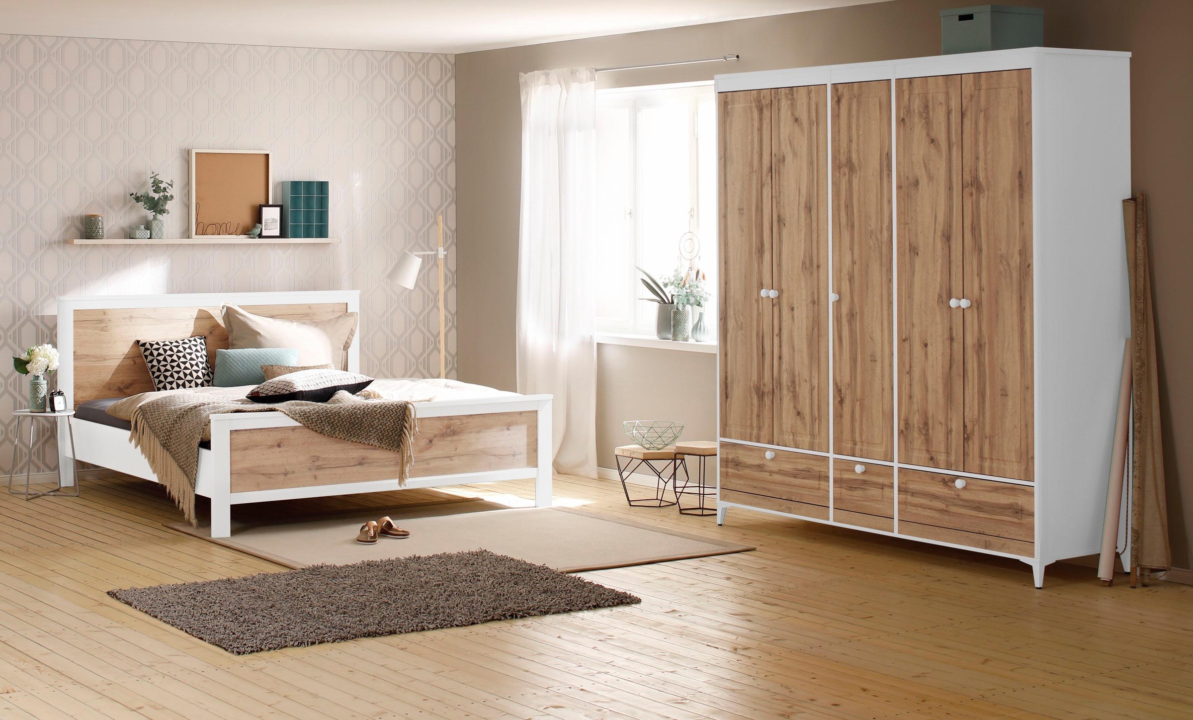 Home Affaire Schlafzimmer Set Set 4 Tlg Bestehend Aus 180er Bett 5 Trg Schrank Und 2 Nachttischen Naturloft