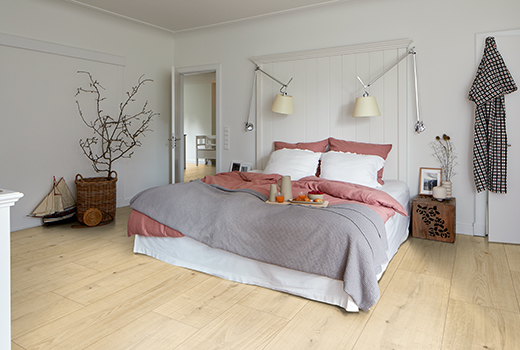 Helle Eichendielen In Gemutlichem Schlafzimmer Der Stil Ist Etwas Rustikal Und Romantisch Gehalten Echtholz Schlafzimmer Ideen Gemutlich Helle Eiche Fussboden